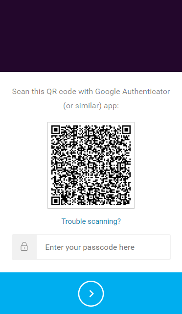 1. Scan the QR code with your authenticator app and enter the passcode from the authenticator app in the field below the QR code.